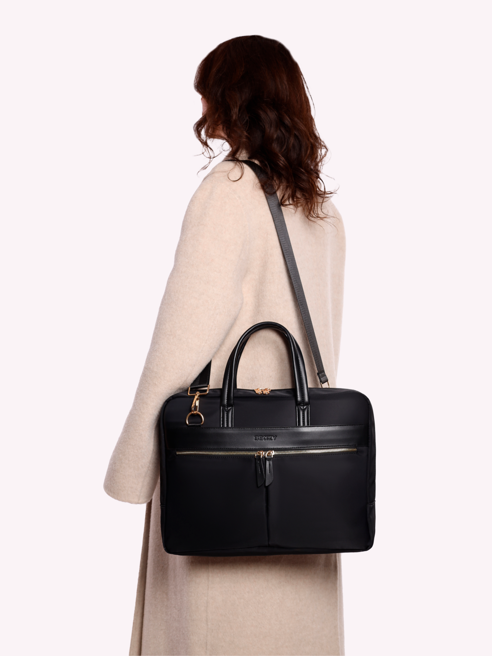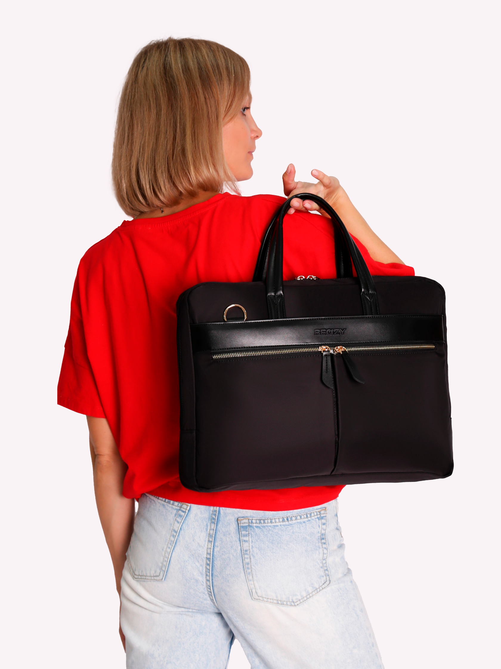 Вмещает ноутбук до 17 дюймов, папку с документами А4, бутылку с водой, ежедневник, косметичку и другие важные мелочи. Благодаря легкому весу сумки и ремню 1,3 метра в комплекте можно не бояться загружать сумку всеми необходимыми вещами.